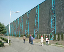 擋風(fēng)墻,是一種治理露天料場(chǎng)揚(yáng)塵污染治理的環(huán)保工程。用于散料港口、火電廠的燃料堆場(chǎng)、鋼鐵企業(yè)的原料燃料堆場(chǎng)、化工企業(yè)的原料燃料堆場(chǎng)、煤礦的出煤存儲(chǔ)場(chǎng)等等。